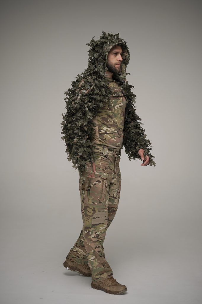 Key Features: • Flexible Hood Brim: Retains its shape for optimal vision and coverage in dense environments. • Reinforced Elbows: Enhanced durability for crawling or contact with rough terrain. • Full MOLLE System: Allows secure attachment of natural vegetation and custom camouflage according to the surrounding landscape. • Adjustable Hood Fit: Dual adjustment system at the back and front for a snug, stable fit and improved concealment. • Palm-Fixation Sleeve Loops: Prevent sleeve shifting during intense movement or tactical operations. • Integrated Face Veil: Camouflage mesh easily folds into the hood and is secured with Velcro when not in use. • Quick-Release Front Closure: Equipped with a durable fastex buckle for fast and easy donning or removal. • Adjustable Volume: Elastic cords and drawstrings provide customizable fit and comfort with or without gear.