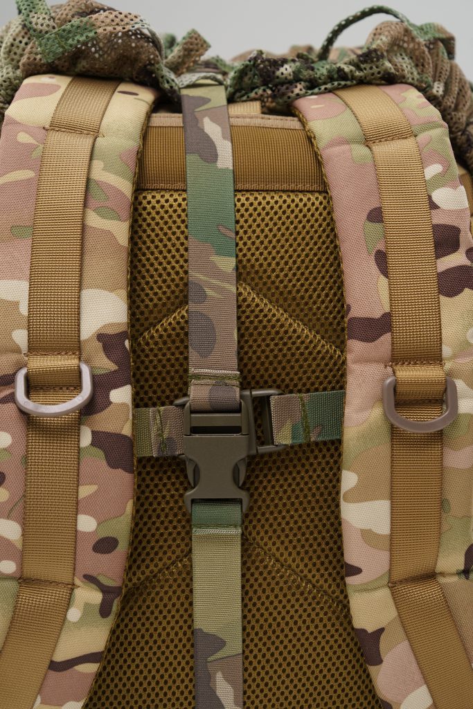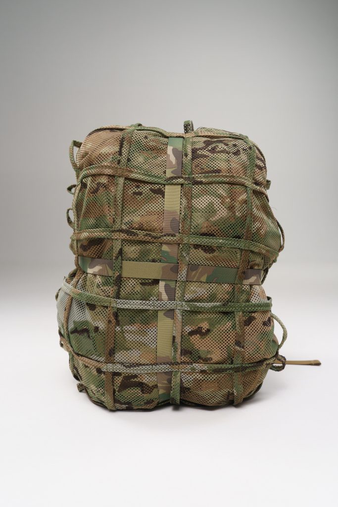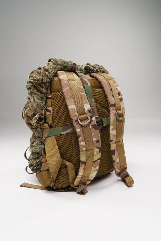 MOLLE system — allows attachment of natural camouflage (leaves, netting) and additional gear